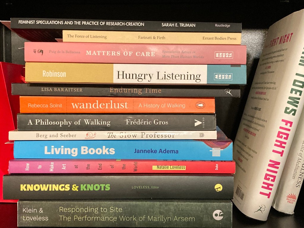 It’s been a joy to have a lot of time to spend reading, and in some cases I’m reading books that have been on my to-read pile for several years. Two colleagues here and I have started a reading and writing group. We’re currently reading together Maria Puig de la Bellacasa’s Matters of Care: Speculative Ethics in More than Human Worlds, and on the off weeks we circulate our writing to each other for feedback. It’s already been incredibly helpful to get their feedback on the early drafts of a book proposal on listening as artistic practice.