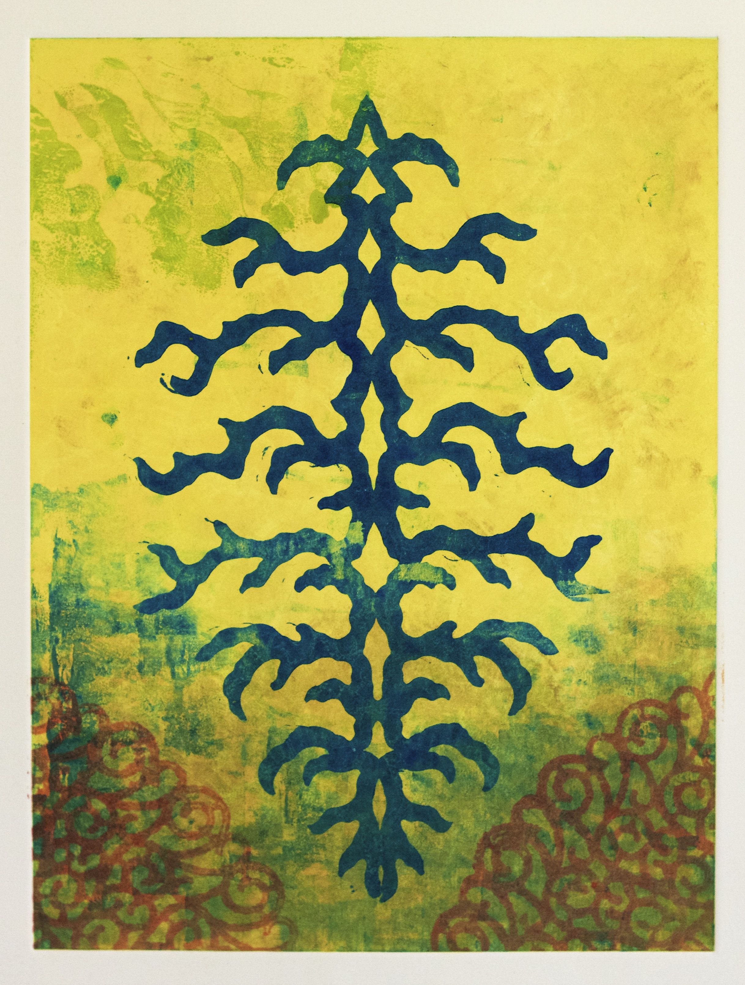 From a series of monotypes incorporating free-hand cut paper, 2015-16:
